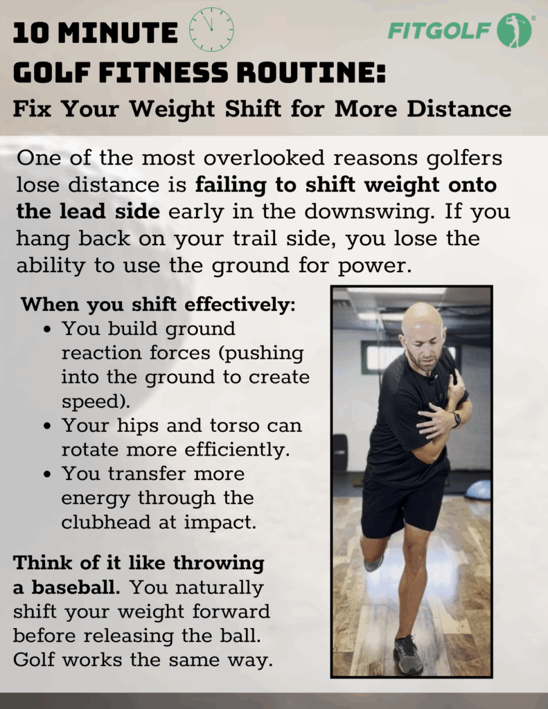 Training your weight shift isn’t just about balance drills- it’s about teaching your body to move athletically, like throwing, jumping, or sprinting. by practicing these exercises 2-3 times per week, you’ll retrain your movement patterns, improve efficiency, and unlock the clubhead speed you thought was gone for good.